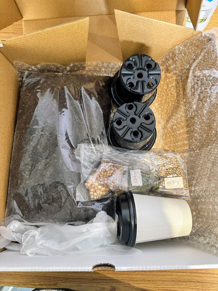 - مكونات البوكس: 6 مركن صغير +كوب لسقى النباتات +4 قفازات +كيس تربة زراعية بتموس + مجموعة بذور للزراعة (كزبرة -حلبة-كتان -ذرة -ماش -دجر ).